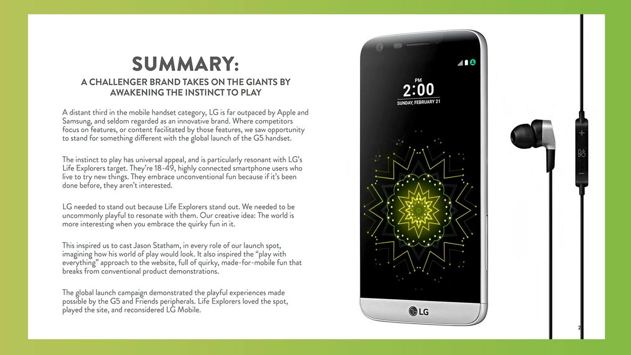LG had a new handset to launch. Globally. But it's a distant third to category darlings Apple and Samsung. They needed to appeal to smartphone shoppers who wanted a primary device that stands out like they do. See how in the case study below.