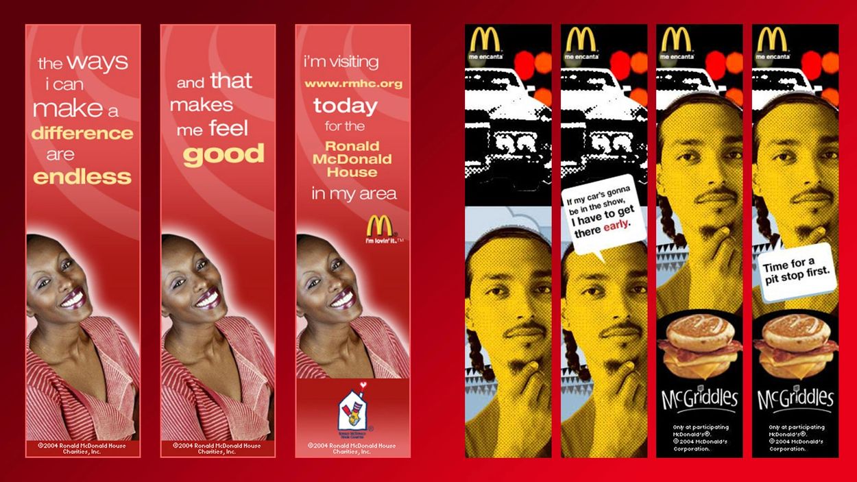 My creative team tackled every consumer segment and demographic for the brand. We applied the Brand Journalism approach to everything from Ronald McDonald House Charities (left) to McGriddles (right). We worked on all of the brand's consumer segments at the time: moms, kids, and young adult males across General, Hispanic, African-American, and Asian consumer markets.