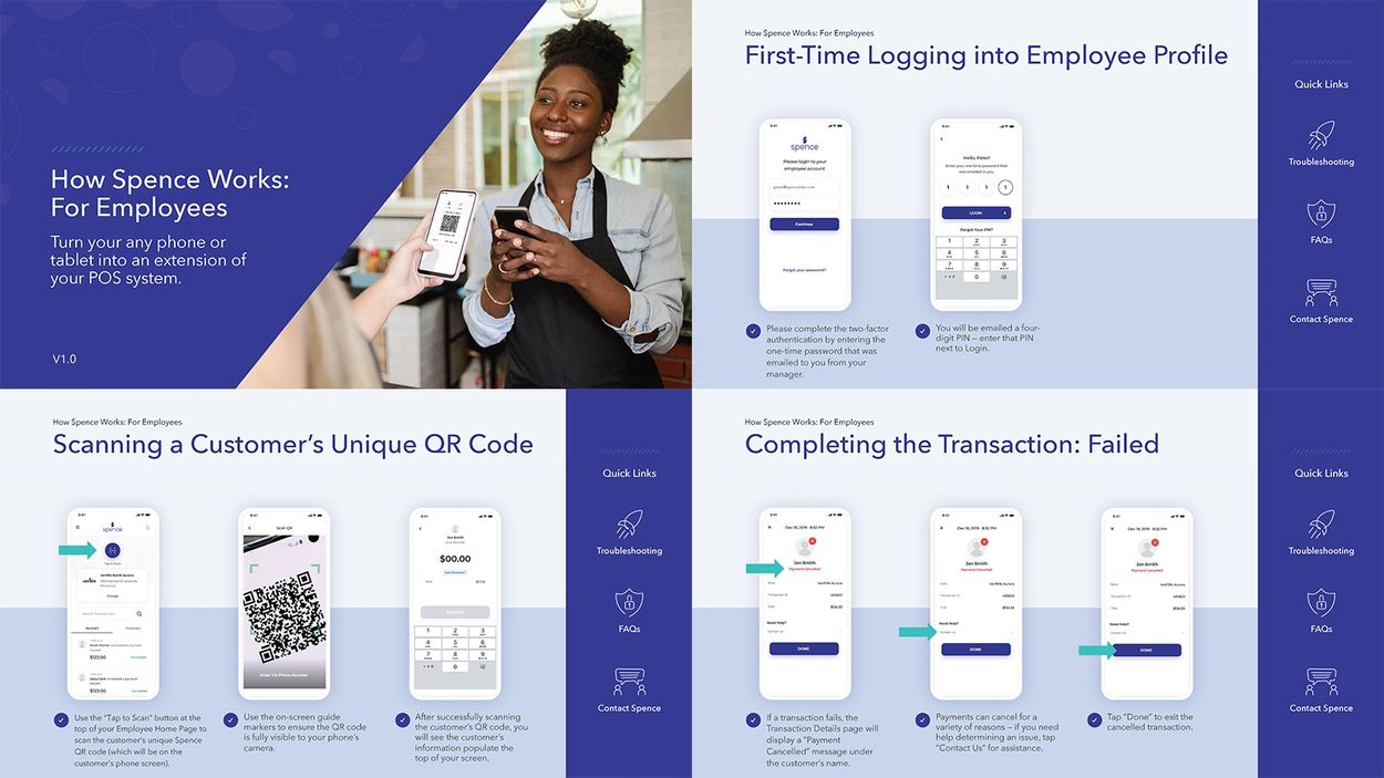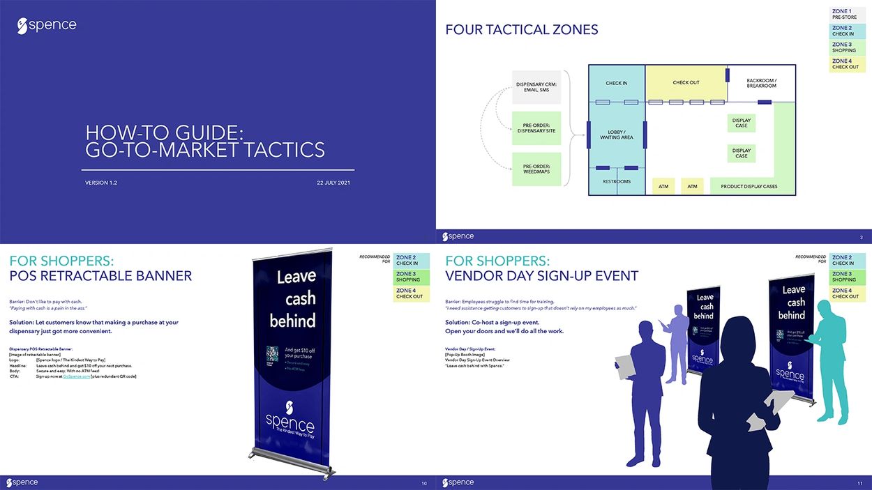 Succinct and easily updated sales enablement and training materials helped Spence Labs offer its dispensary partners a more effective and efficient way to train employees. We made it easy to understand the implementation of this cashless payments service, and how to assist customers with sign-up and check out. And then a Go-To-Market tactical plan, adaptable for any retailer or partner that launches Spence service in their stores.